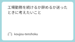 工場勤務を続けるか辞めるか迷ったときに考えたいこと