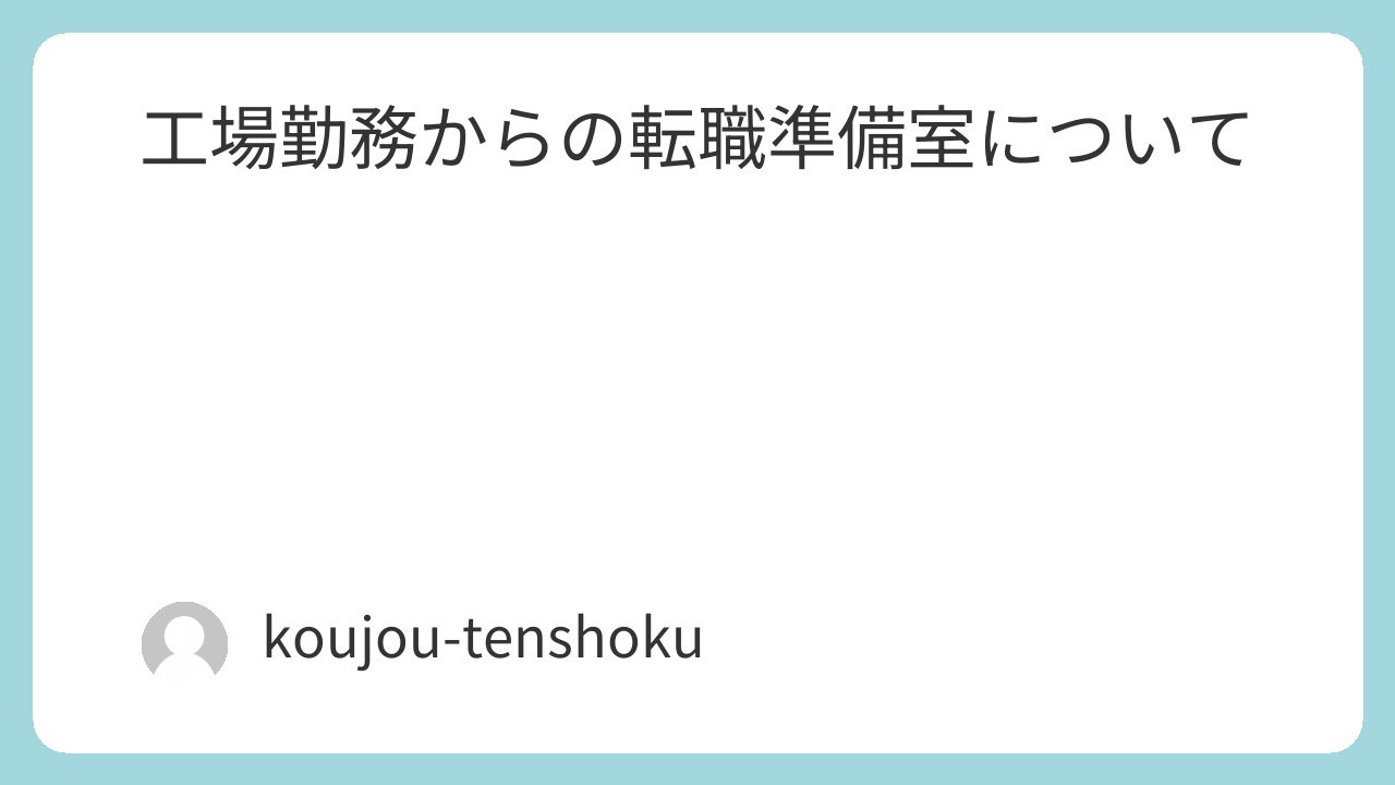 当ブログ「工場勤務からの転職準備室」をご覧いただきありがとうございます。