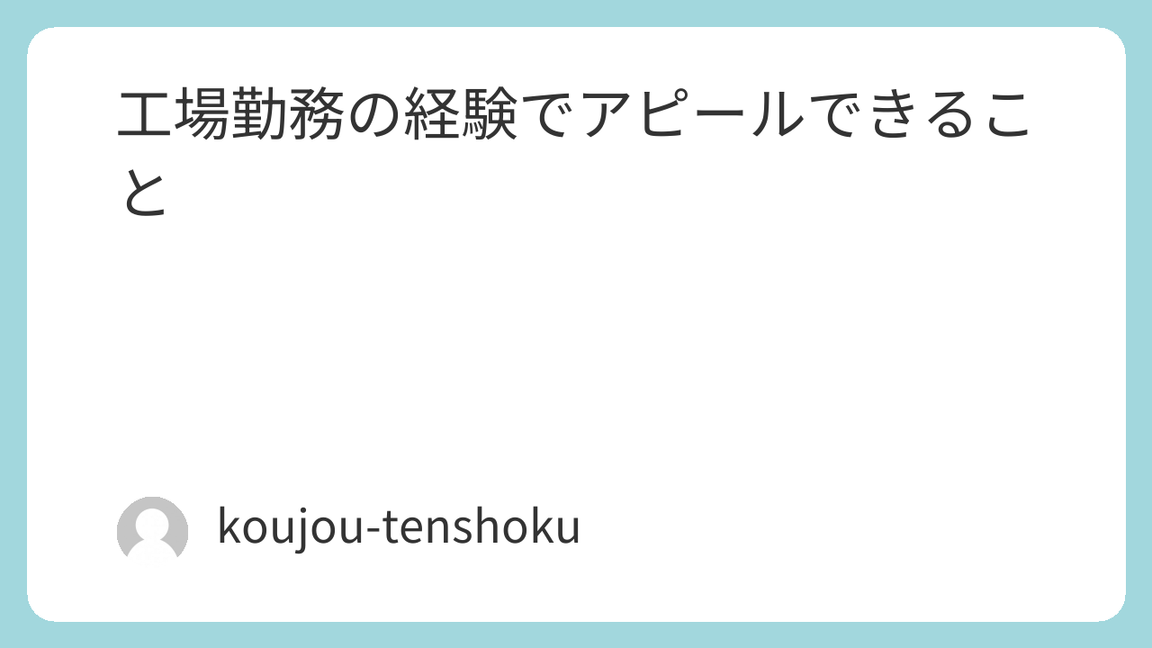 その意味で、工場勤務で手順を守って働いてきた経験は、十分アピール材料になります。