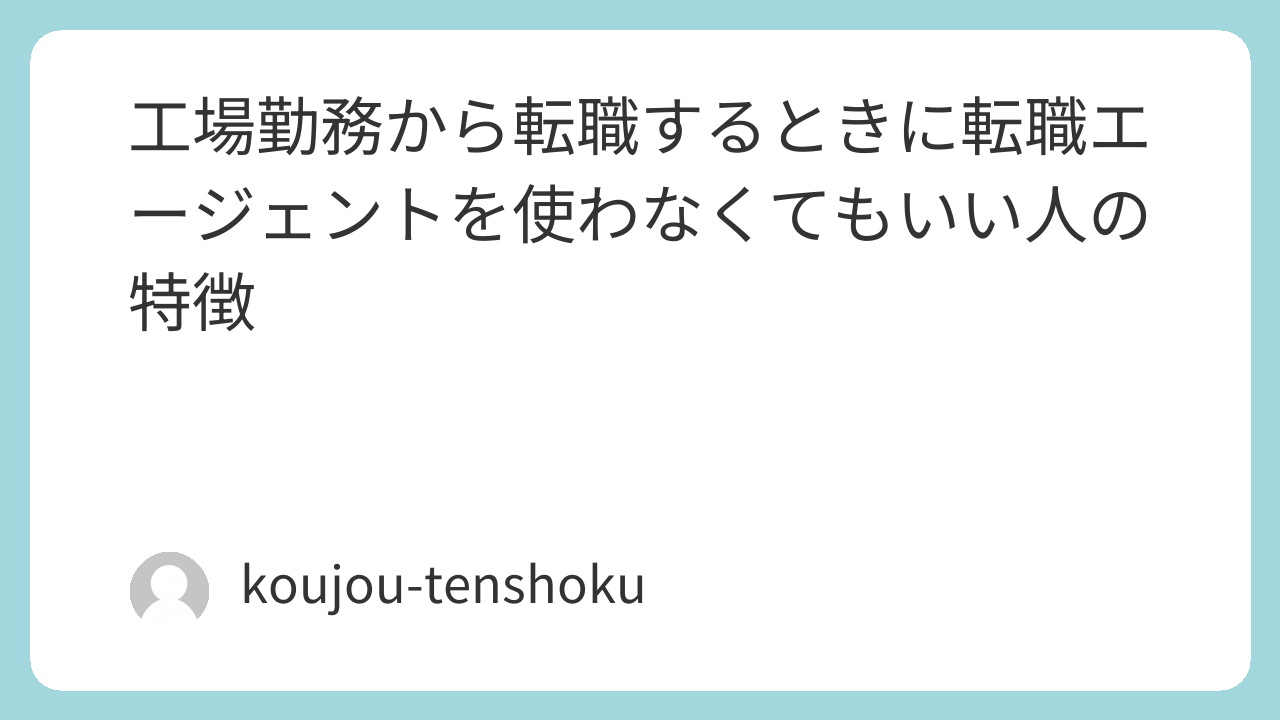 この記事では、工場勤務から転職するときに、転職エージェントを使わなくてもいい人の特徴を初心者向けにわかりやすく整理します。