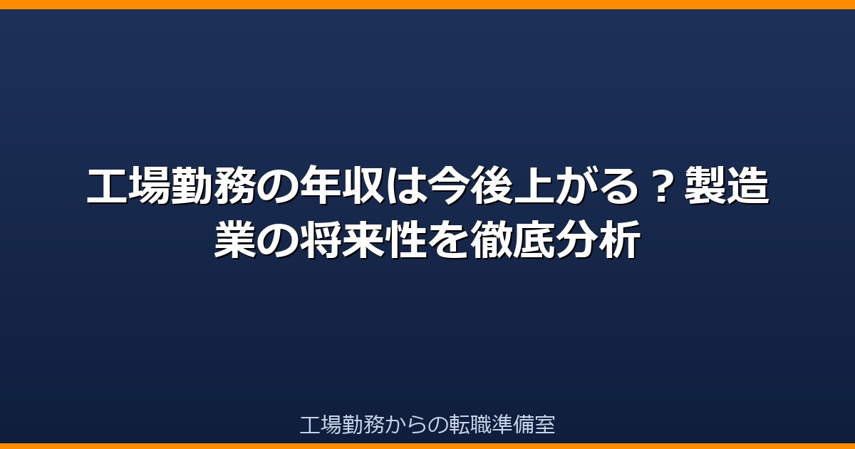 工場勤務の年収は全産業平均より伸びが鈍く、特に30代以降で差が広がります。自動化・海外移転の影響もあり、現状維持では年収が上がりにくい環境です。年収を上げるには「上位企業への転職」「管理職昇進」「資格取得」「異業種転職」が現実的な方法です。将来の年収に不安を感じているなら、今から行動することが最大のリスクヘッジになります。