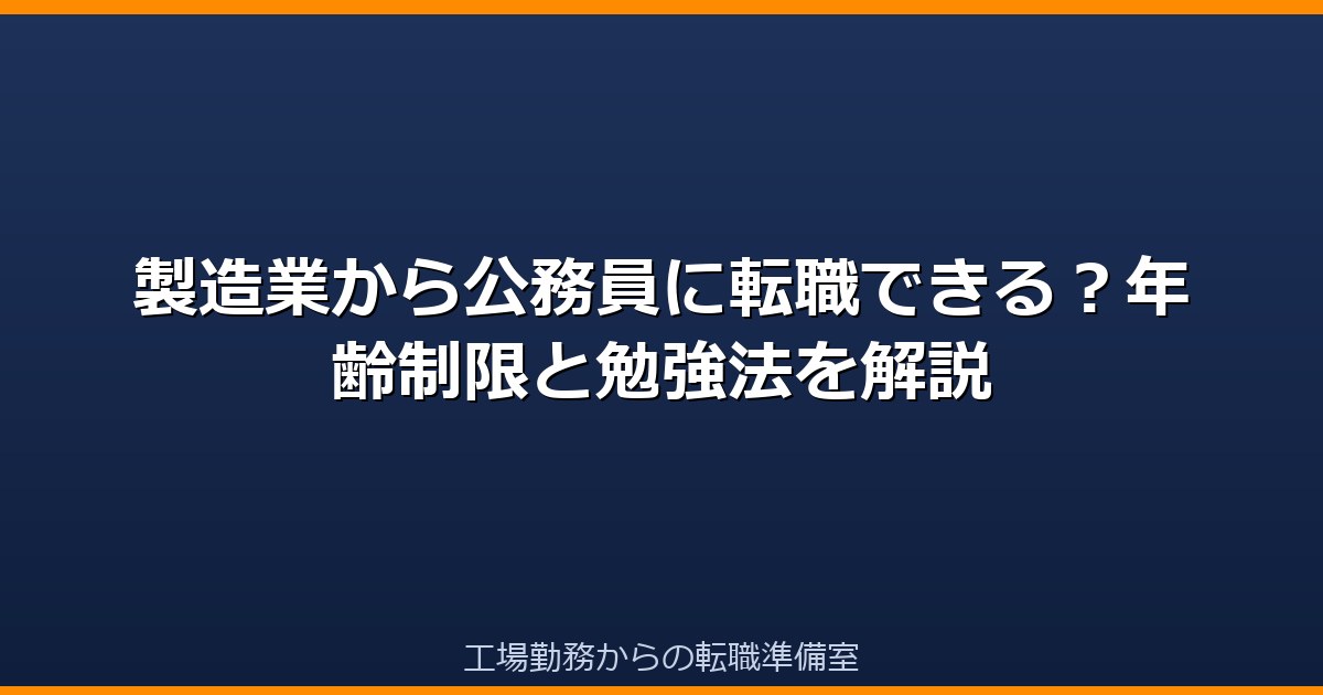 「安定した公務員になりたい」という工場勤務者は少なくありません。しかし「年齢制限があるのでは」「勉強が大変そう」と不安に思っている人も多いです。この記事では製造業・工場勤務からの公務員転職の現実と、年齢別の戦略・勉強法を詳しく解説します。