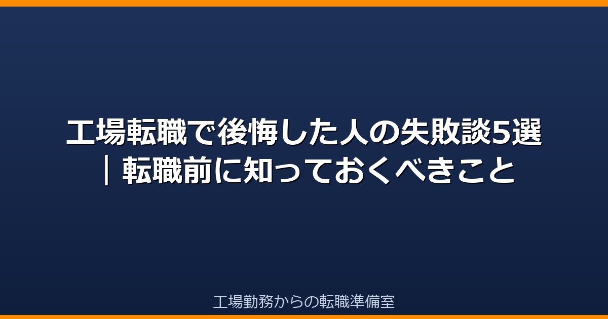 工場転職で後悔した人の失敗談5選|転職前に必ず確認すべきこと