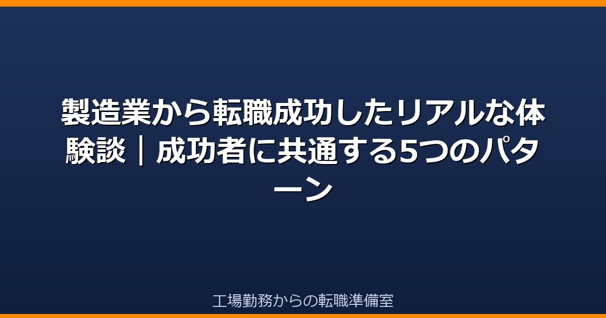 「工場から転職できるのか不安」という人に向けて、実際に製造業から転職に成功した人たちのリアルな体験談を紹介します。成功者に共通するパターンを知ることで、あなたの転職活動に役立てましょう。