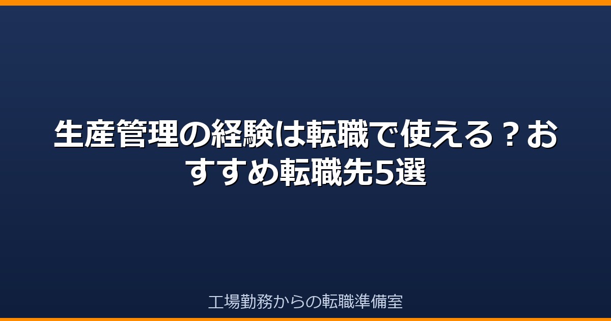 生産管理の経験は転職で使える?おすすめ転職先5選
