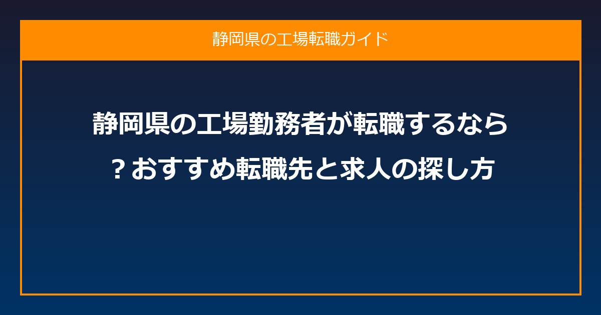 静岡県の工場勤務者が転職するなら?おすすめ転職先と求人の探し方