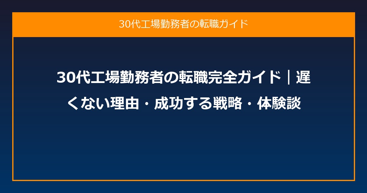 30代工場勤務者の転職完全ガイド|遅くない理由・成功する戦略・体験談