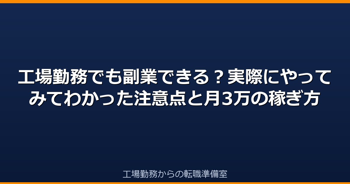 この記事では、工場勤務を続けながら実際に副業を始めた経験をもとに、本当に副業できるのかどうか・何が向いているか・気をつけることを全部書く。