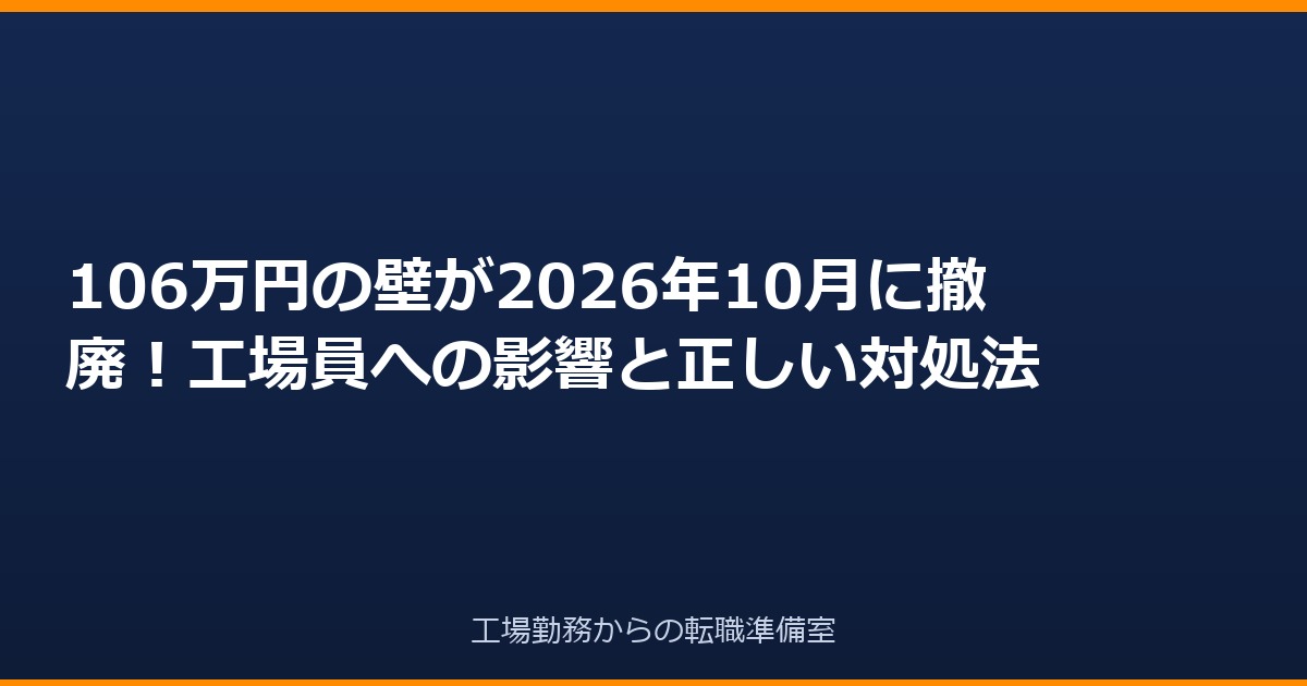 106万円の壁が2026年10月に撤廃!工場員への影響と正しい対処法