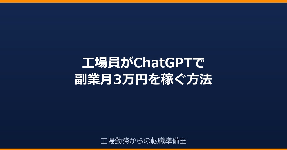 この記事では、筆者が実際に工場勤務をしながらChatGPTで月3万円の副収入を達成した方法を、ゼロから順番に解説します。