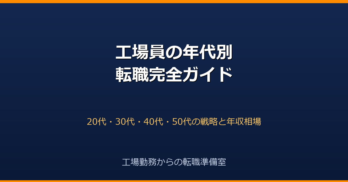 この記事は、20代・30代・40代・50代それぞれの工場員が「どう動けば年収アップ転職を成功させられるか」を一本にまとめた総合ガイドです。