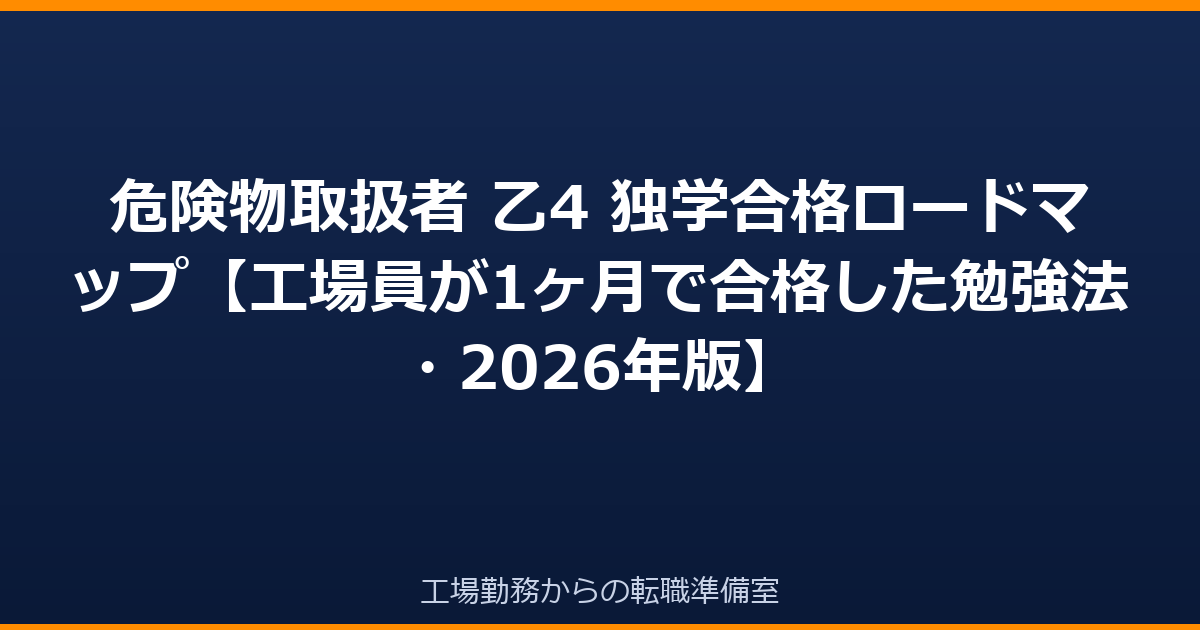 工場勤務で「次に何をしよう」と迷っている方は、乙4を最初の一歩にしてみてください。