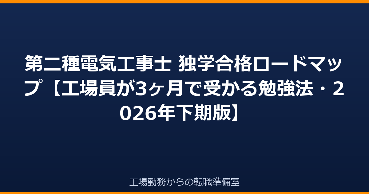 第二種電気工事士 独学合格ロードマップ【工場員が3ヶ月で受かる勉強法・2026年下期版】