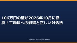 2026年10月に106万円の壁が廃止。工場員や製造業パート・副業にどう影響するか、手取りへの影響と今から準備すべきことを徹底解説。