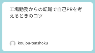 工場勤務 工場勤務からの転職で自己PRを考えるときのコツ 工場勤務からの転職で自己PRを考えるときのコツを解説します。確認力、継続力、ルール順守など、未経験転職でも伝わりやすい強みのまとめ方を初心者向けに整理しました。 2026.03.13 工場勤務転職準備