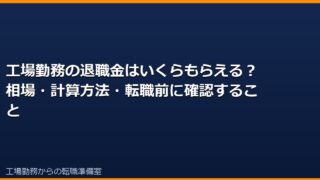 工場勤務の退職金の相場・計算方法・もらえないケースを解説。転職前に退職金規定を確認し、損しないタイミングで行動するためのポイントをまとめました。